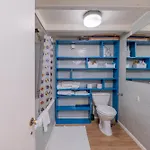 Deze 1-badkamer accommodatie is uitgerust met een badkamer met badlakens. Daarnaast vindt u er een badkuip en een apart toilet.